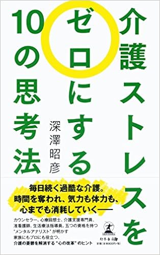 介護ストレスをゼロにする10の思考法 (日本語) 新書 – 2015/11/27 - 著者は、「回想法」をはじめとした手法を行い、要介護者のメンタルケアを重視するデイケア施設を経営している。著者によると、介護者と要介護者の信頼関係を築くことや、要介護者の心のありように気を配った介護ならば、リハビリの効果も上がり、介護者の負担も飛躍的に軽減するという。そのような「心」の介護のやり方を伝え、よりよい介護を世に広める書籍とする。